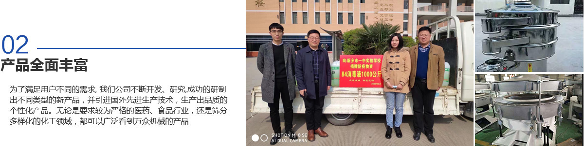 新鄉(xiāng)市萬(wàn)眾機(jī)械設(shè)備有限公司是生產(chǎn)振動(dòng)機(jī)械、篩分設(shè)備和過(guò)濾設(shè)備的專業(yè)廠家之一,擁有生產(chǎn)設(shè)備、雄厚的技術(shù)力量、完善的檢測(cè)手段、嚴(yán)格的管理體系。是河南省的商標(biāo)之一,被河南省科學(xué)技術(shù)廳頒定為高新技術(shù)企業(yè),為新鄉(xiāng)市“守合同重信用企業(yè)“。質(zhì)量信得過(guò)產(chǎn)品、質(zhì)量服務(wù)消費(fèi)者滿意企業(yè)、合格產(chǎn)品等榮譽(yù)稱號(hào)。擁有自主進(jìn)出口經(jīng)營(yíng)權(quán),產(chǎn)品遍布各地,并遠(yuǎn)銷(xiāo)北美、西歐及東南亞等地區(qū)。